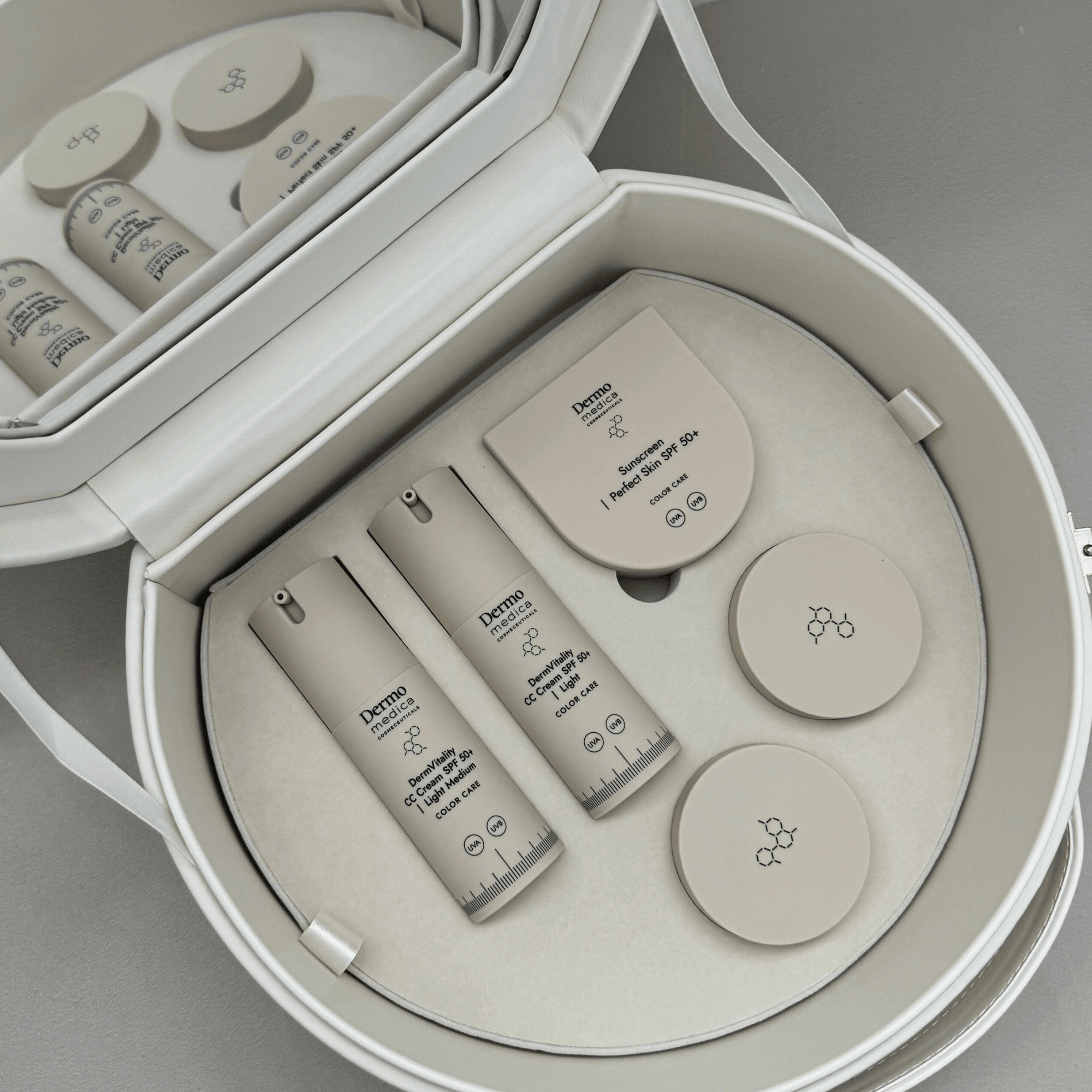 Zestaw Dermomedica Color Care w eleganckim kuferku to propozycja dla osób, które pragną kompleksowo zadbać o swoją skórę, sięgając po profesjonalne rozwiązania o potwierdzonym działaniu. Wewnątrz znajduje się pełna kolekcja kosmetyków Dermomedica Color Care – linii stworzonej z myślą o skórze wrażliwej, naczyniowej oraz potrzebującej regeneracji po zabiegach kosmetologicznych i medycyny estetycznej.